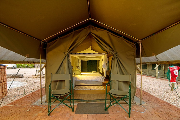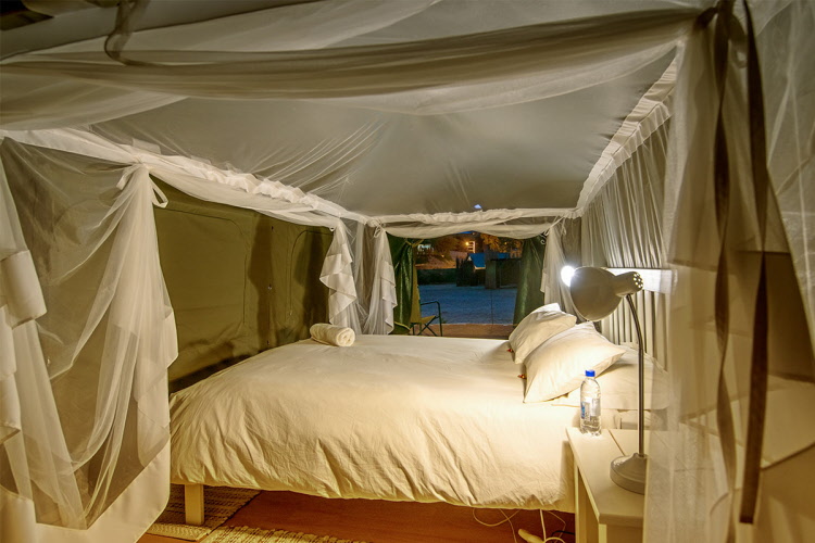 Schönes großes Zelt mit zwei Einzelbetten, Freien WI-Fi Internet, eine Wärmdecke im Winter und ein Kühlgebläse im Sommer. Handtücher | 220v Steckdose | Licht | Schattig | Nutzung von Grillplatz möglich . Betten können zusammengestellt werden zum Doppelbett | Moskito Netz